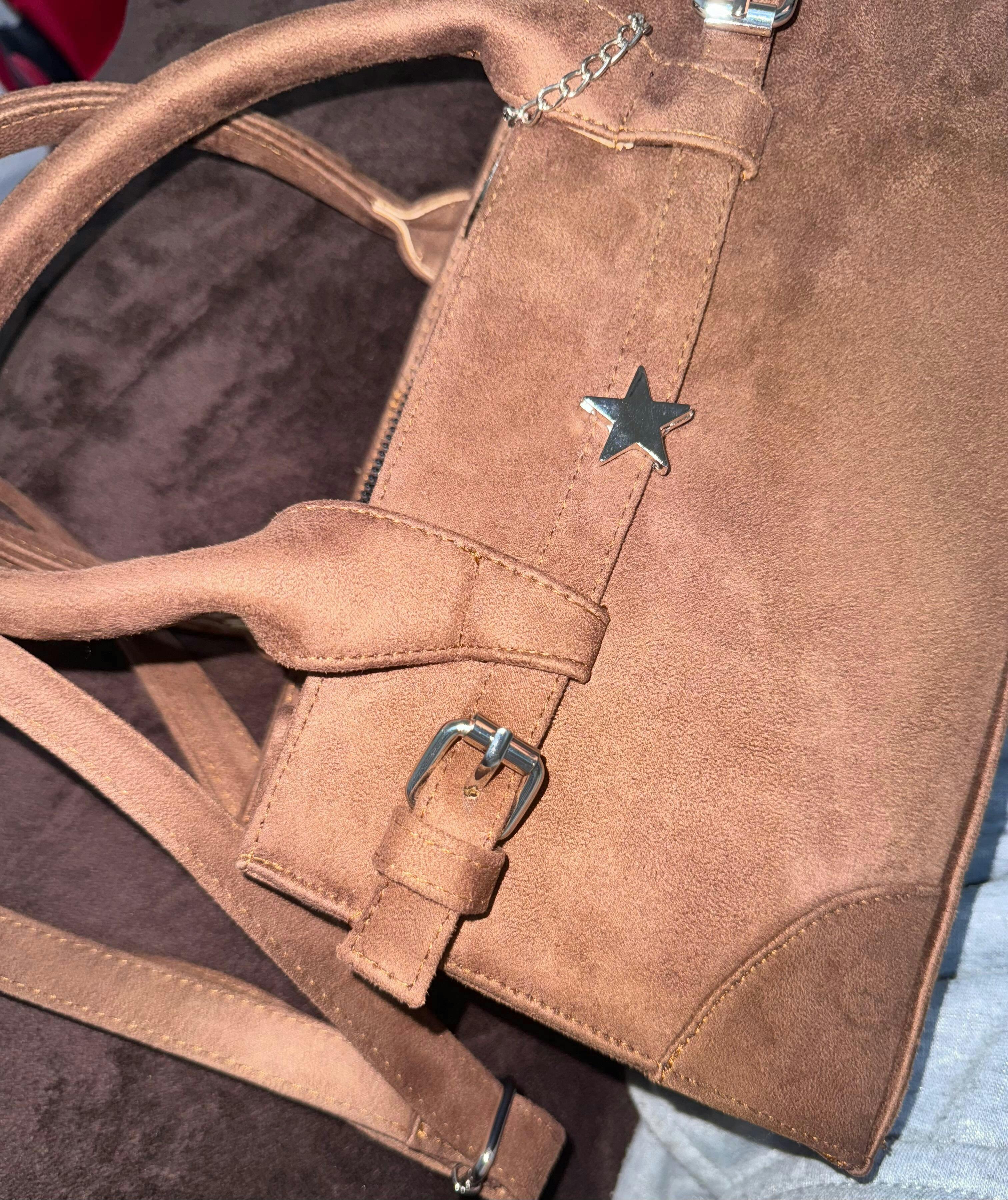 Su diseño destaca por las hebillas frontales que le dan un toque sofisticado, mientras que su strap ajustable te permite usarla cómodamente como crossbody. También cuenta con asas largas para llevarla como shoulder bag según tu estilo o la ocasión.